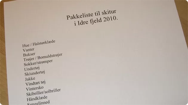 Så sønnike og jeg er blevet enige om, at i dag er dagen, hvor vi tager ”pakkelisten” til skituren, under armen og bevæger os ud i diverse butikker for at finde de ting som vi ikke sådan lige ligger inde med. F.eks. har vi ingen skibriller, skiundertøj eller et sæt skitøj. Men inden dagen er omme er jeg sikker på at vi har alt det der skal til. 🙂