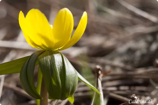 De enkelte små gule erantis jeg har i min have, står også og vender ansigtet mod solen og nyder tilsyneladende foråret lige så meget som jeg.