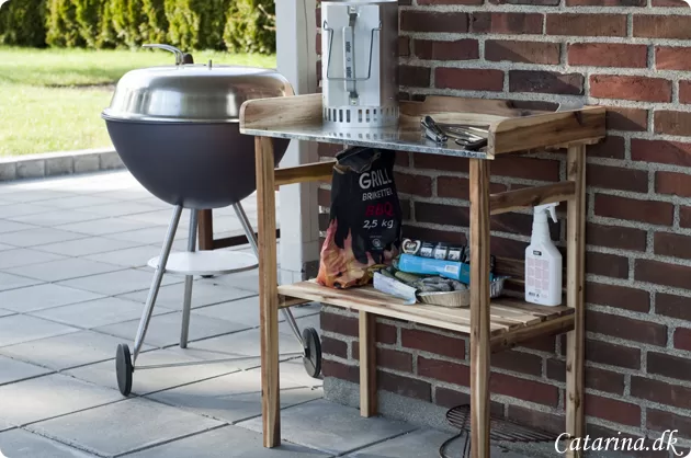 Jeg har hele tiden gerne ville have lidt styr på alt grill tilbehøret, ikke at vi har så frygteligt meget, men er par tænger , kul og optænding plus et par fedtbakker, så bliver det alligevel til lidt og det kan godt rode lidt. så var det jeg så det hersens plantebord og fik den idé ar det da kunne udgøre det for den reol jeg egentlig havde forestillet mig.