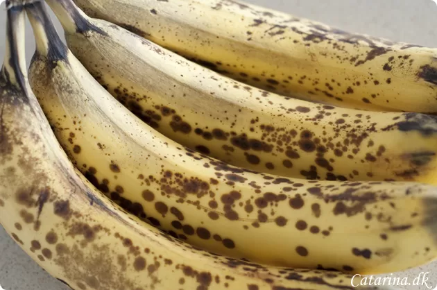 Her i huset har vi næsten altid baner, enten bare til at spise sådan almindeligt, eller også bruges de til mine smoothies, men nogle gange når de at blive en smule for mørke og så ligger det lige til højrebenet at sætte den store røremaskine igang med en omgang bananmuffins og det var lige det der skete i dag.
