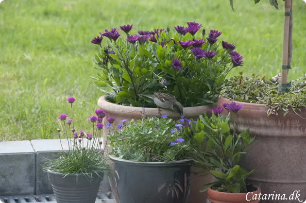 .. ja, så er det åbenbart fuglene. Jeg har aldrig oplevet at småfuglene spiser mine blomster i krukkerne, men nu har jeg fået syn for sagen. 😉