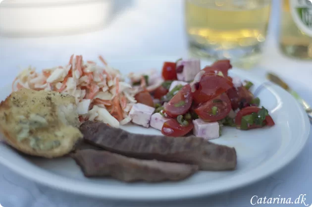 Som sikkert rigtig mange andre familier, ja så var aftenens menu også her, dejlig grillmad og gode salater. Jeg klarede forberedelserne på kort tid og Søren tog sig af optænding samt grilning, sådan foregår det nok også de fleste steder. ;)Den nye øl fra Tuborg, smager faktisk dejligt frisk, lidt hen af Corona, som er én af mine favoritter her om sommeren.