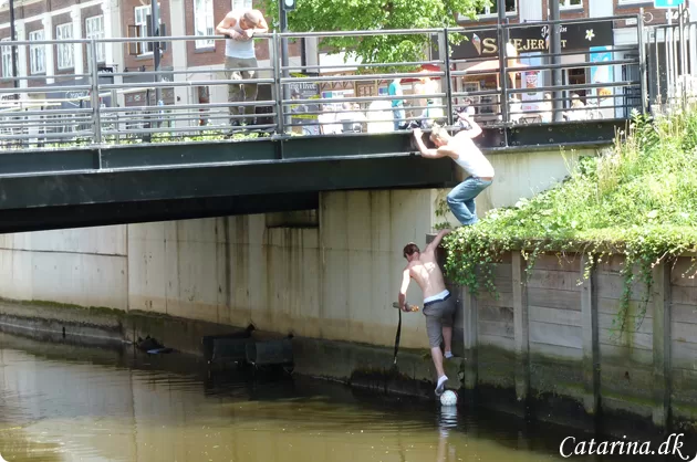 ~Et par unge gutter havde skudt deres fodbold i vandet og havde en del besvær med at få den op igen. Til sidst lykkedes det dog.