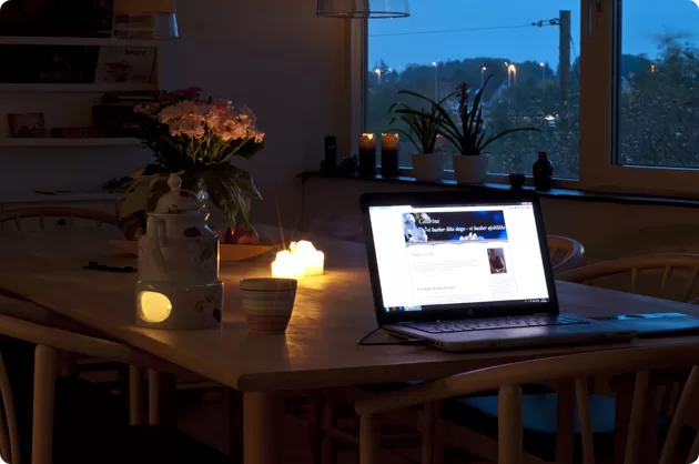 ..er ved at være så fremherskende når sønnike går ud af døren klokken 7, at der skal kunstigt lys til for at vi kan se noget. Jeg har også tændt stearinlys her i køkkenet, for det er altså noget hyggeligere, at sidde og arbejde med lidt hyggebelysning omkring mig. Hvis solen kommer frem, slukkes de for så skal strålerene have lov til at danse ind gennem vores store vinduer.