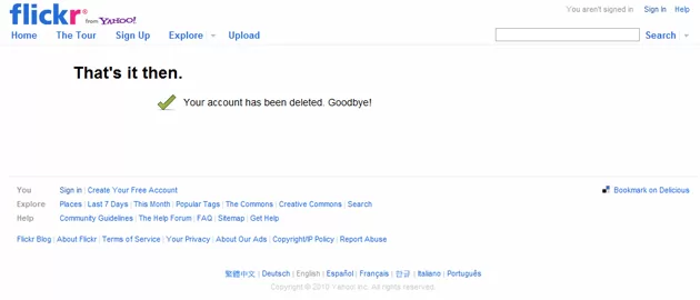 I sted for at vente til den 11. april 2011, hvor min konto skulle fornyes, ja så har jeg altså lige være inde på Flickr og annulleret den nu. Jeg brugte ikke Flicker på samme måde som jeg engang gjorde og jeg har jo før talt om at den skulle lukkes og det blev så nu. 😉