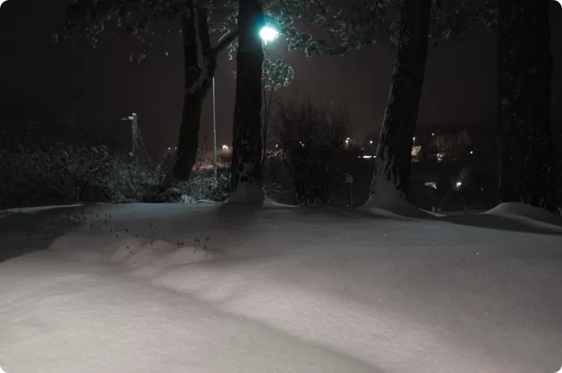 Det meste af aftenen i går små-sneede det ogsom aftenen skred frem tog vinden også til. Lige inden jeg smuttede til køjs, skulle jeg lige ud og se hvor meget det egentlig føg og det var ikke så lidt.