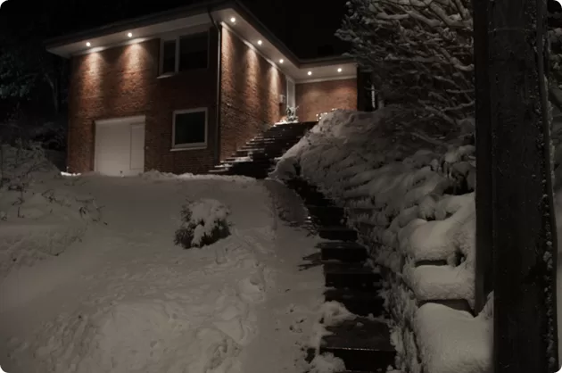 Så jeg må ærligt indrømme at jeg var lidt spændt på hvordan her ville se ud til her til morgen. Vækkeuret var sat til klokken 5 sharp, for skovles skal der og vi har jo en del trapper der skal klares + et stort stykke vej og 50 meter fortov. Heldigvis havde vinden åbenbart lagt sig, for der var ingen store fyge bunker, så det var lige til at gå til.