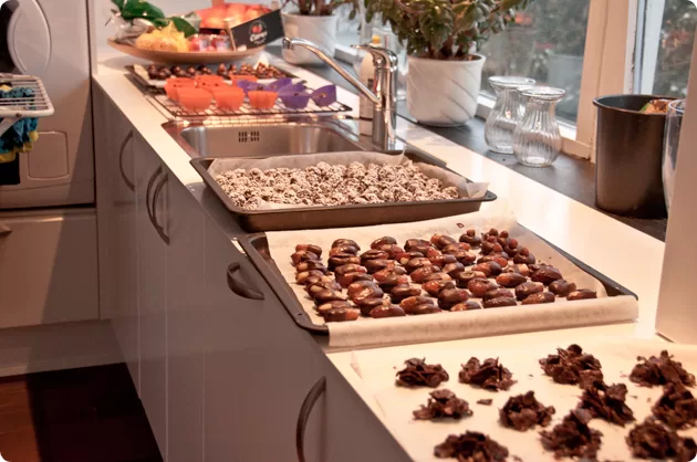 Her skal det ikke holde til juledagene, for hvis vi løber tør, så laver vi bare noget mere, her byder vi dem som kommer og vi hygger osse selv med lidt. 😉