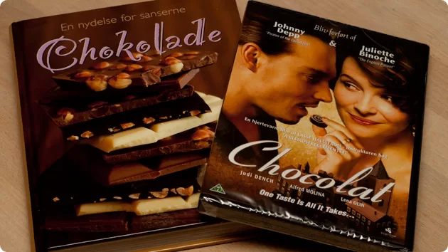 ..vist lidt for godt. 😉 DVD’en er en af mine yndlingsfilm og jeg har med jævne mellemrum kikket efter den, men nu behøver jeg ikke kikke længere, for i aftes var det en af gaverne fra drengene (sammen med andre herligheder). Og bogen, uha, som den er fyldt med de lækreste opskrifter på chokolade delikatesser.