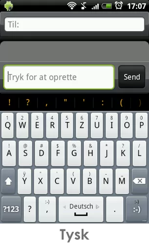 og det eneste man skal gøre er at aktivere sproget, er at gå ind under indstillinger og vinge det sprog af som man vil have og ordbogen downloades til din telefons. Når de forskellige sprog så er valgt, er det super let at skifte imellem den på selve Keyboardet, for det eneste du skal gøre er at, swipe til højre hen over mellemrums-tasten så skifter sproget til det næste i rækken og dermed ændres det tyske tastatur også til et tysk et af slagsen (læg mærke til at y og z bytter plads).