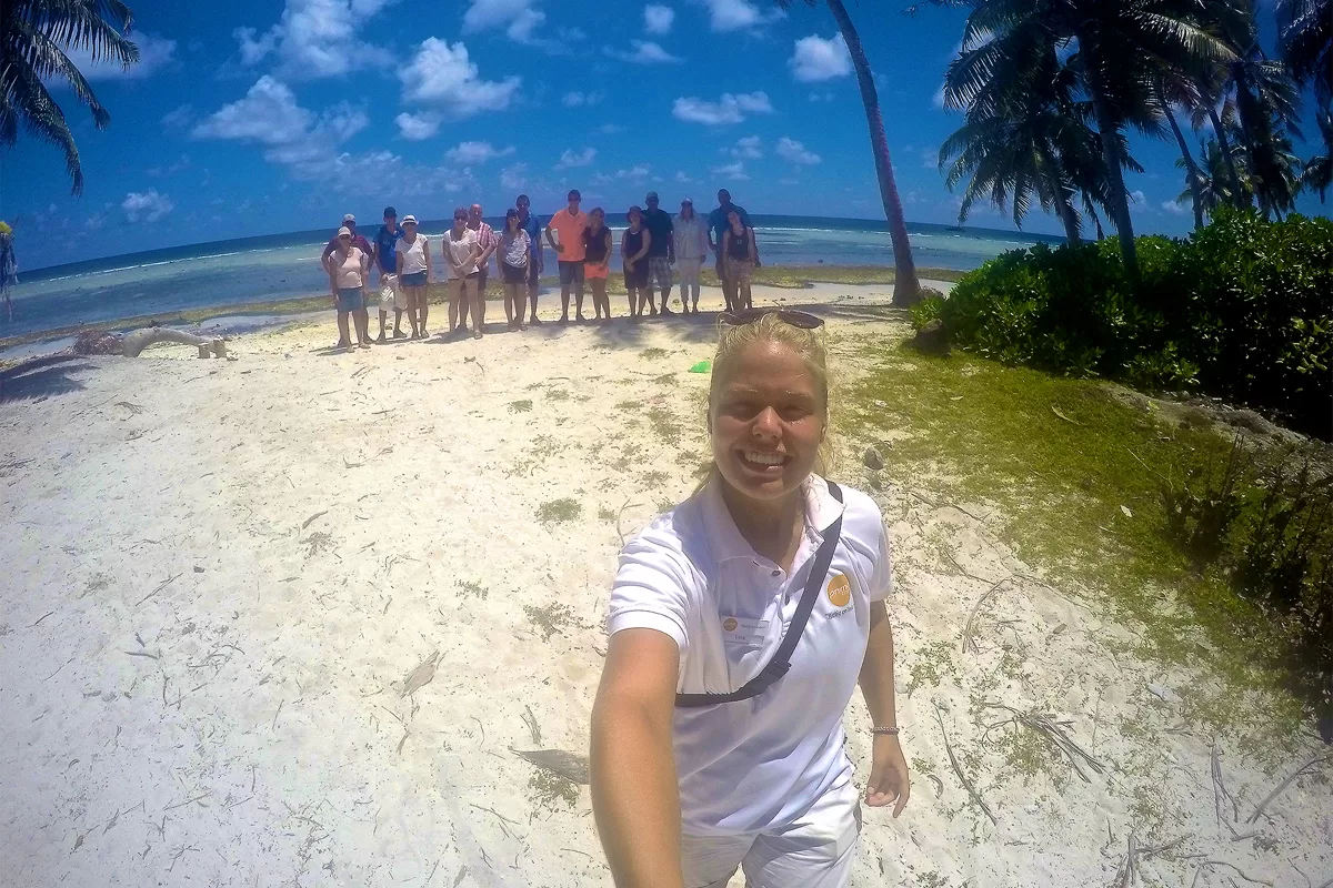Resortet ligger på en lang tange som ikke er mere end ca. 100 meter bred, nogle steder en smule mere, men de fleste steder meget mindre. Det betyder også, at resorters bungalows ligger på rækker ud til vandet på begge sider og derfor har nogle lidt længere op til restauranterne og barerne end andre. Så de cykler vi alle (i hvert fald os fra Danmark) får stillet rådighed, bliver flittigt brugt. På den ene tur, som kun Søren og jeg var på, skulle vi netop have cyklerne med, da det var en tur op til den lokale del af øen, hvor der ikke normalt er adgang uden guide.