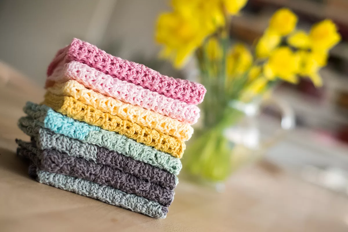 Jeg elsker at bruge de hjemmehæklede klude og nogle af dem her skal helt sikker med i campingvognen, når sæsonnem skydes i gang. Men ellers tror jeg at der er nogle i min omgangskreds, der risikere at få nogle stykker, for der er jo grænser for, hvor mange klude vi selv kan bruge.