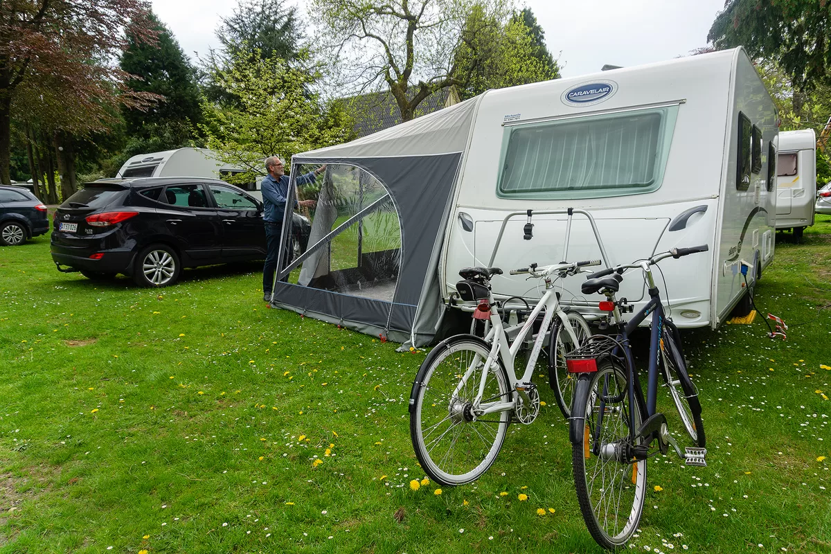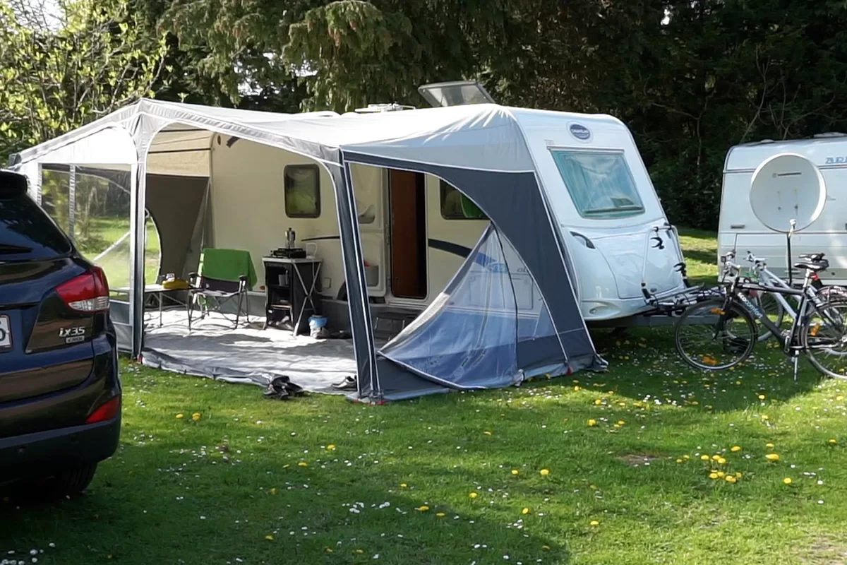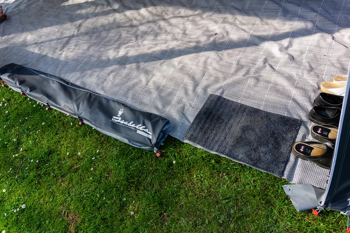 I år har vi et Isabella Sun Shine Plus solsejl med karbonstænger og to fronter, men på vores ture. Det er noget helt andet at have et ”telt” der fylder hele vognens længde på, end Kampa Ace Air 300, som vi har haft med de to forgående år. Vi var lidt spændt på hvordan det ville være at sætte det op, for os et stort telt på vognen med faste stænger, for det har vi ikke prøvet siden vores aller første vogn, som havde et Isabella Penta fortelt.