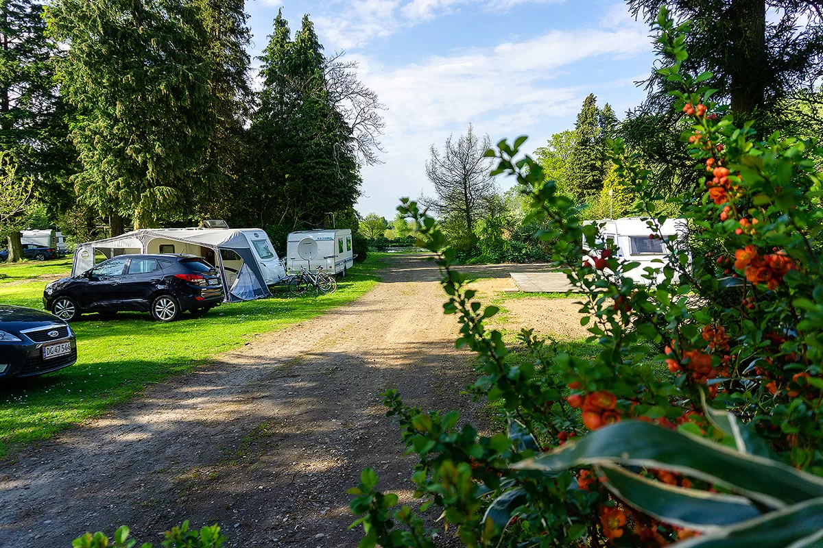 På pladsen er der god plads mellem campingvognene, så det var nemt, at finde en plads der passede os. I det hele taget det nemt, at finde små hyggelige kroge med fred og ro på pladsen.