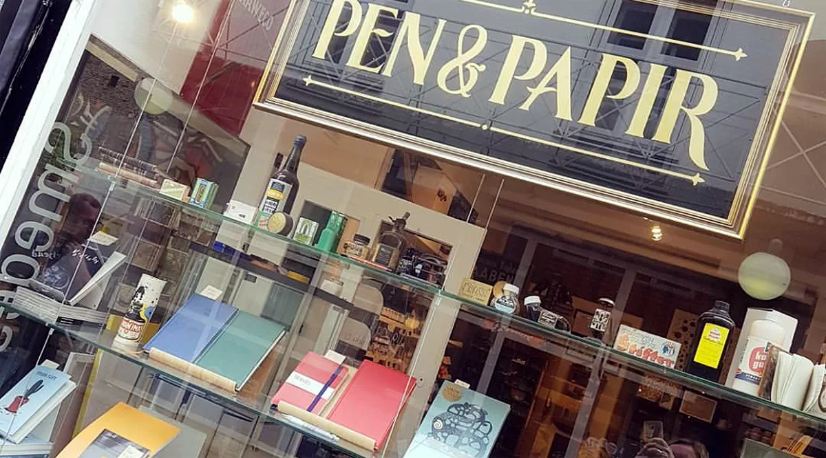Søren kan skrive under på, at jeg elsker at komme i boghandlere, stormagasiners papirafdelinger og og andre steder hvor papir og skriveredskaber findes. Han har helt sikker ikke tal på, hvor mange gange i årenes løb, har han hørt mig sige “jeg skal lige…..” hvorefter jeg forsvundet ind i en butik, eller over i afdelingen for skrive-kontor-papir-male-skriveredskaber. I de fleste byer herhjemme findes nogle fine, store og velassorterede boghandlere – kæde boghandlerne – som mere eller mindre forhandler de same bøger, spil, papir og skriveredskaber. De er rigtig hyggelige at besøge og jeg kikker ofte ind i dem begge, her taler jeg om Bog & Idé og Arnold Busk. Men her i odense findes der også en lille lækker pen og papir butik. Den ligger i Smedestræde og hedder Pen & Papir. På deres hjemmeside skriver de: